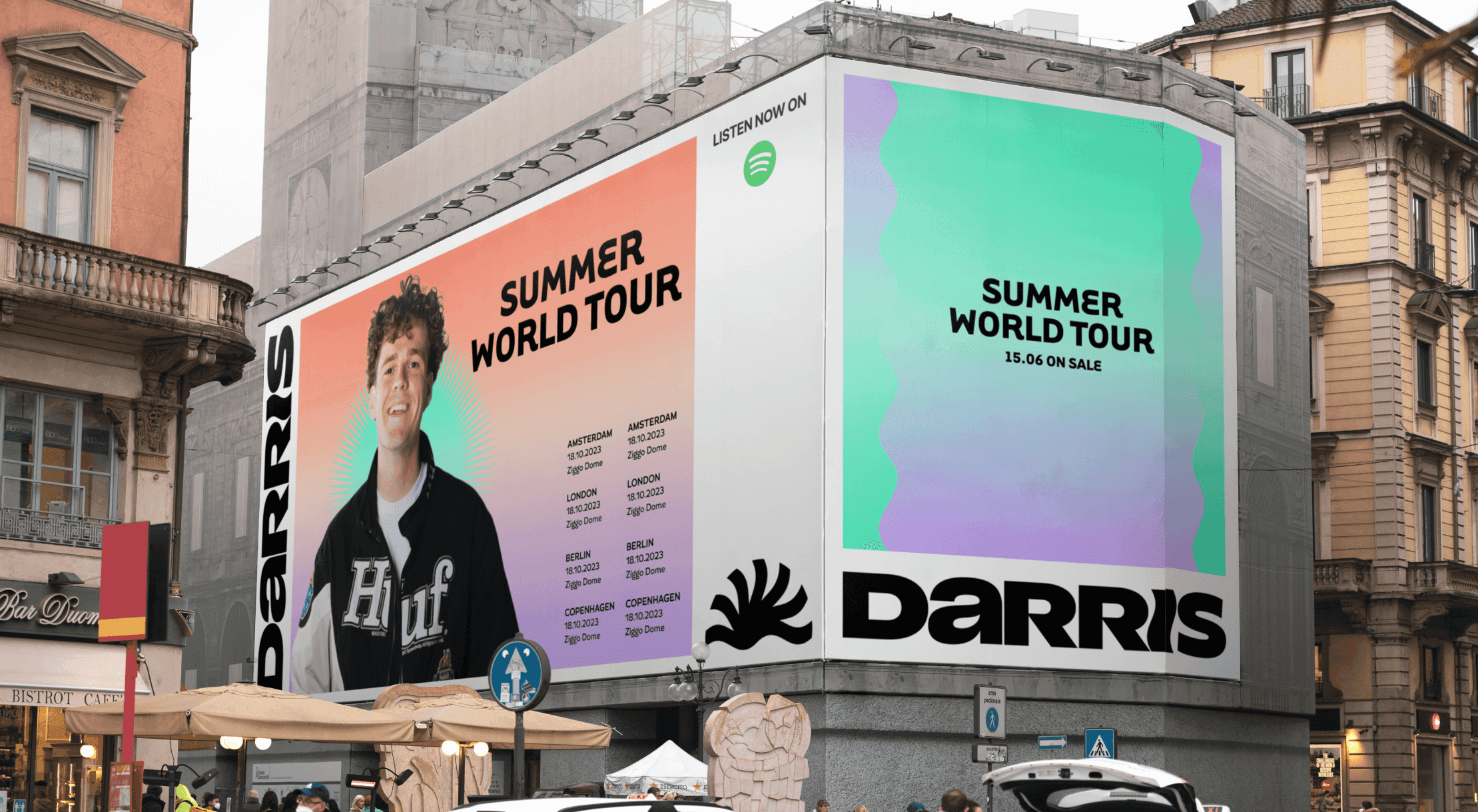 I created around six logo mark variations and a bunch of wordmarks to capture that energy and philosophy we discussed. To bring out that summer vibe, we went for bold gradients that really embody the atmosphere around DARRIS’s music.